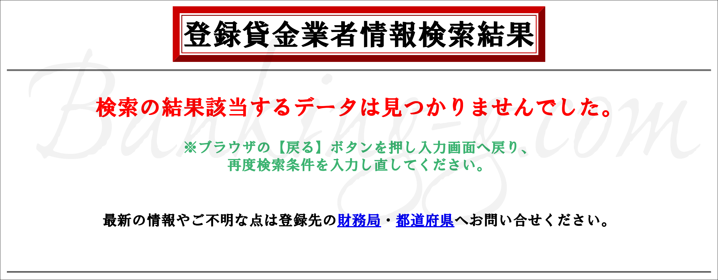 本物の貸金業者であれば、融資案内の電話番号は例外なく金融庁の公開データベース上で確認を取ることができます。融資の広告・宣伝や勧誘にあたって使用することができる電話番号は、貸金業法によって事前登録が済んだ電話番号だけに制限されているからです。しかしながら、今回の電話番号「0358102837(03-5810-2837)」は金融庁の登録貸金業者データベースを調べても、まったく存在しません。完全な無登録業者なのです。それなのに、正規の貸金業者気どりなのですから、お話にならないと言えます。