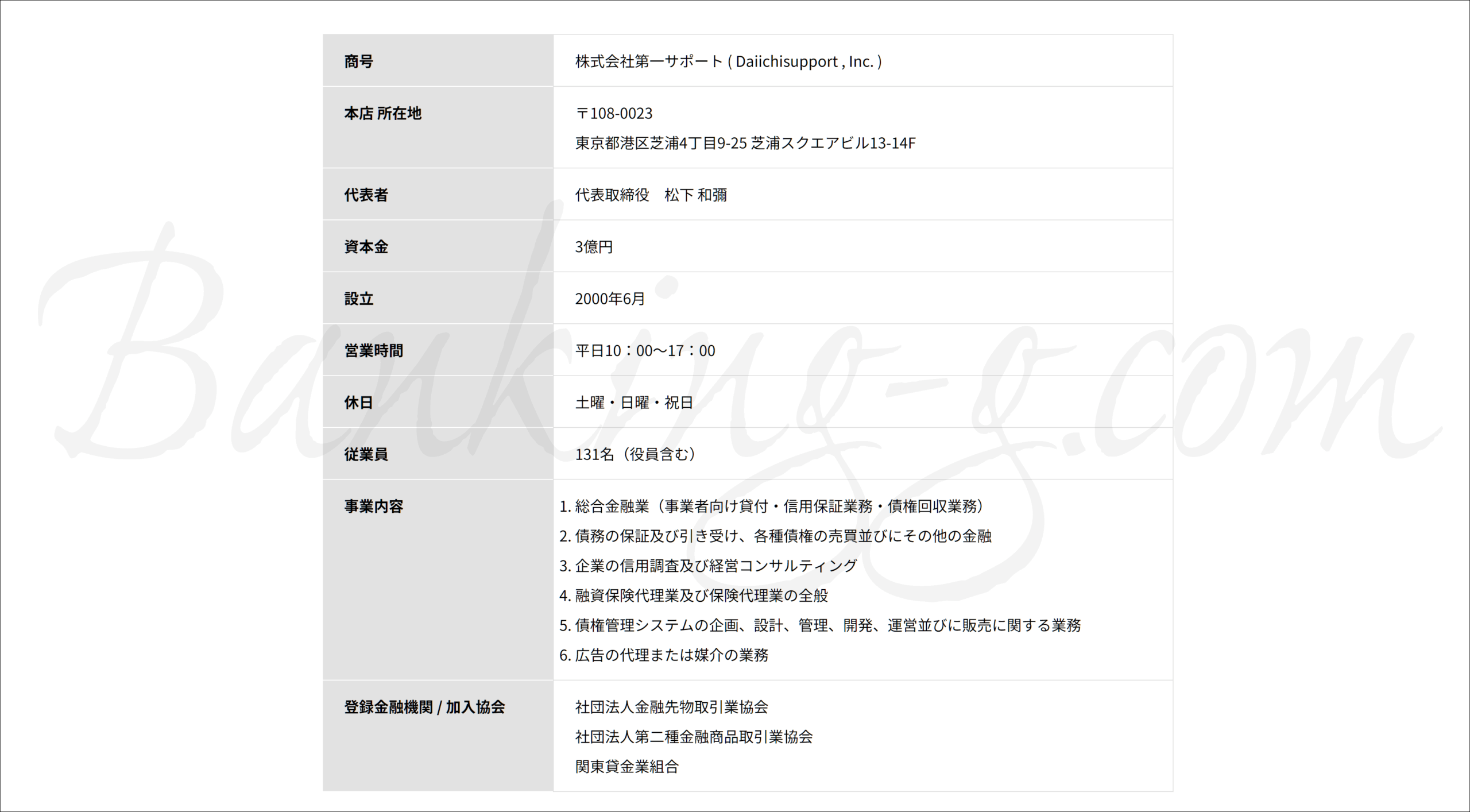 「株式会社第一サポート」はいつもの中小企業狙いの先払い系の詐欺業者です。当然、融資はされません。頼んでもいない融資案内FAXを朝早くから送りつけてくるだけでなく、それではと借入を申し込んでみてもテンプレ通りの融資保証金詐欺を強要してくるだけの、ただの詐欺業者です。法人向け融資会社を装っている詐欺業者であり、融資など受けられない危険な詐欺業者なので、絶対に引っかからないようにしてください。
