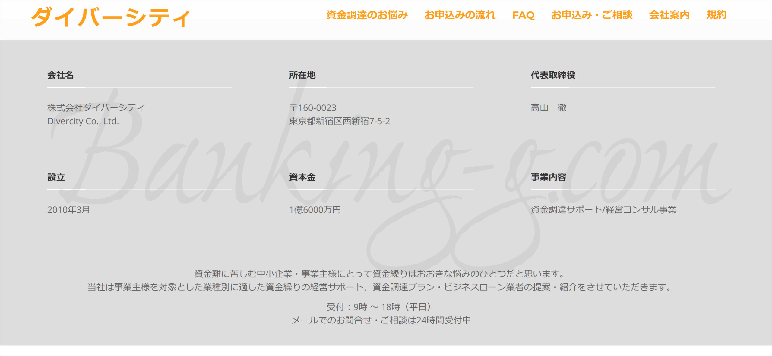 もちろん、こちらの会社は金融庁に正規登録されてある本物の融資会社ですし、来店不要で無担保とはいえ、事業ローンとなるので総量規制の対象外として現在のお借入残高に影響を受けない融資となります。今回の株式会社ダイバーシティのように本当の所在地すら不明の危険な融資保証金詐欺グループと比べて、一体どちらが時間の無駄にならなさそうでしょうか。