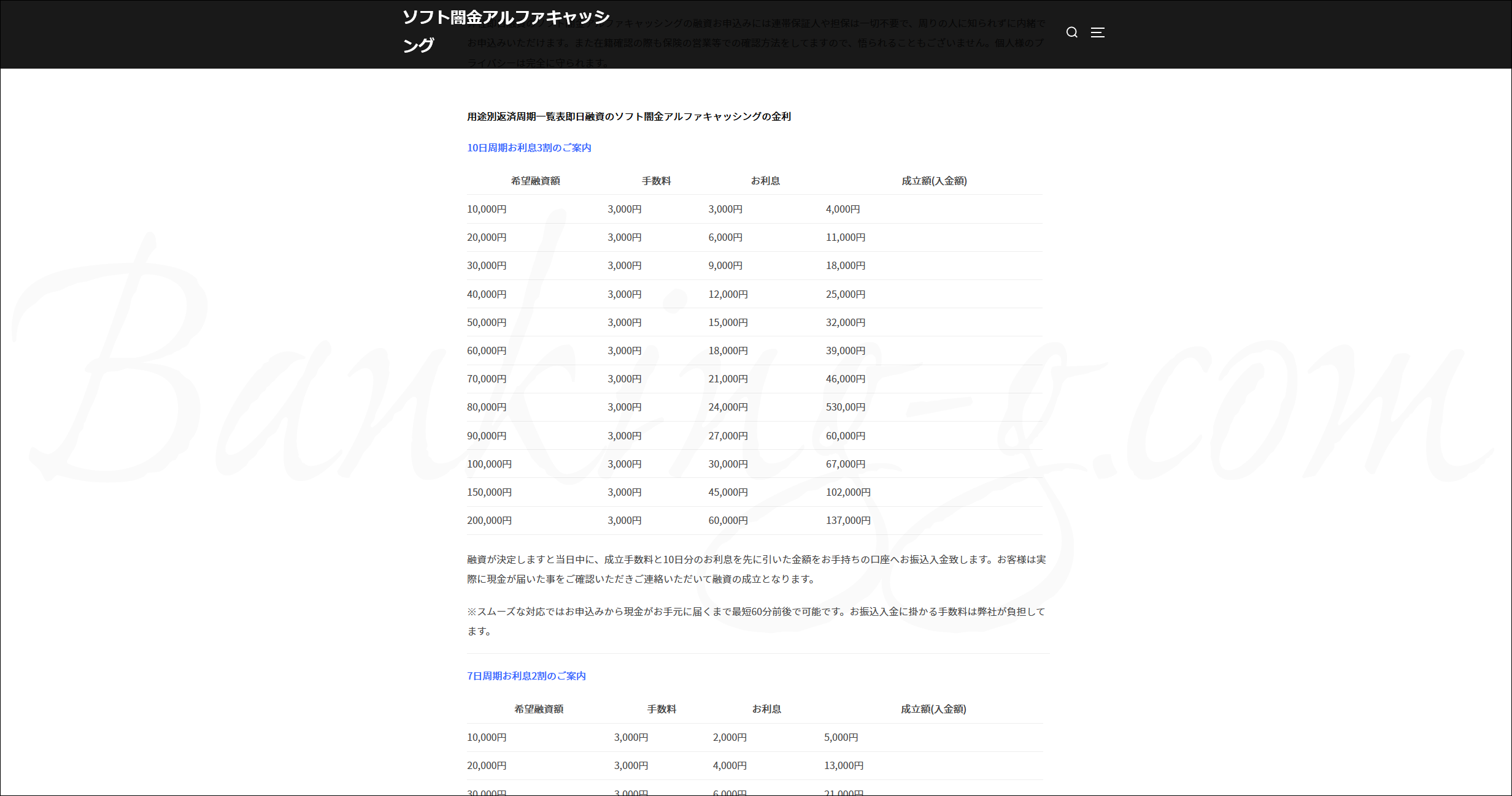 ホームページ上の説明によると、このアルファキャッシングの利息はシューニかトサンに謎の手数料が3,000円となっています。