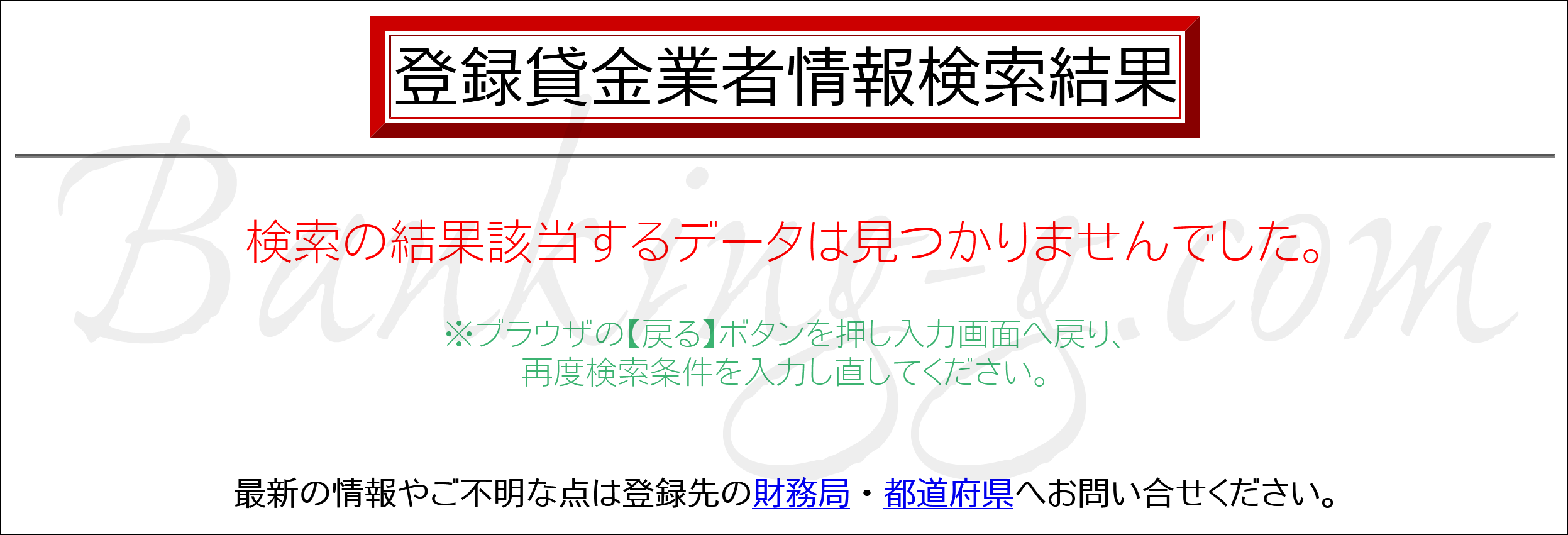 本物の貸金業者であるなら、融資営業に使われる電話番号やFAX番号は100パーセント間違いなく金融庁の公開データベースで確かめることができます。融資の宣伝や広告、勧誘を行う際に使うことができる電話番号やFAX番号は、貸金業法によって事前登録済みの番号に制限されているからです。しかしながら、今回の番号「05068627990(050-6862-7990)」を金融庁の登録貸金業者データベースで確認しようと検索しても、まったく存在しません。文句なしのモグリ業者なのです。それなのに、本物の貸金業者のつもりなのですから、お話にならないと言えます。
