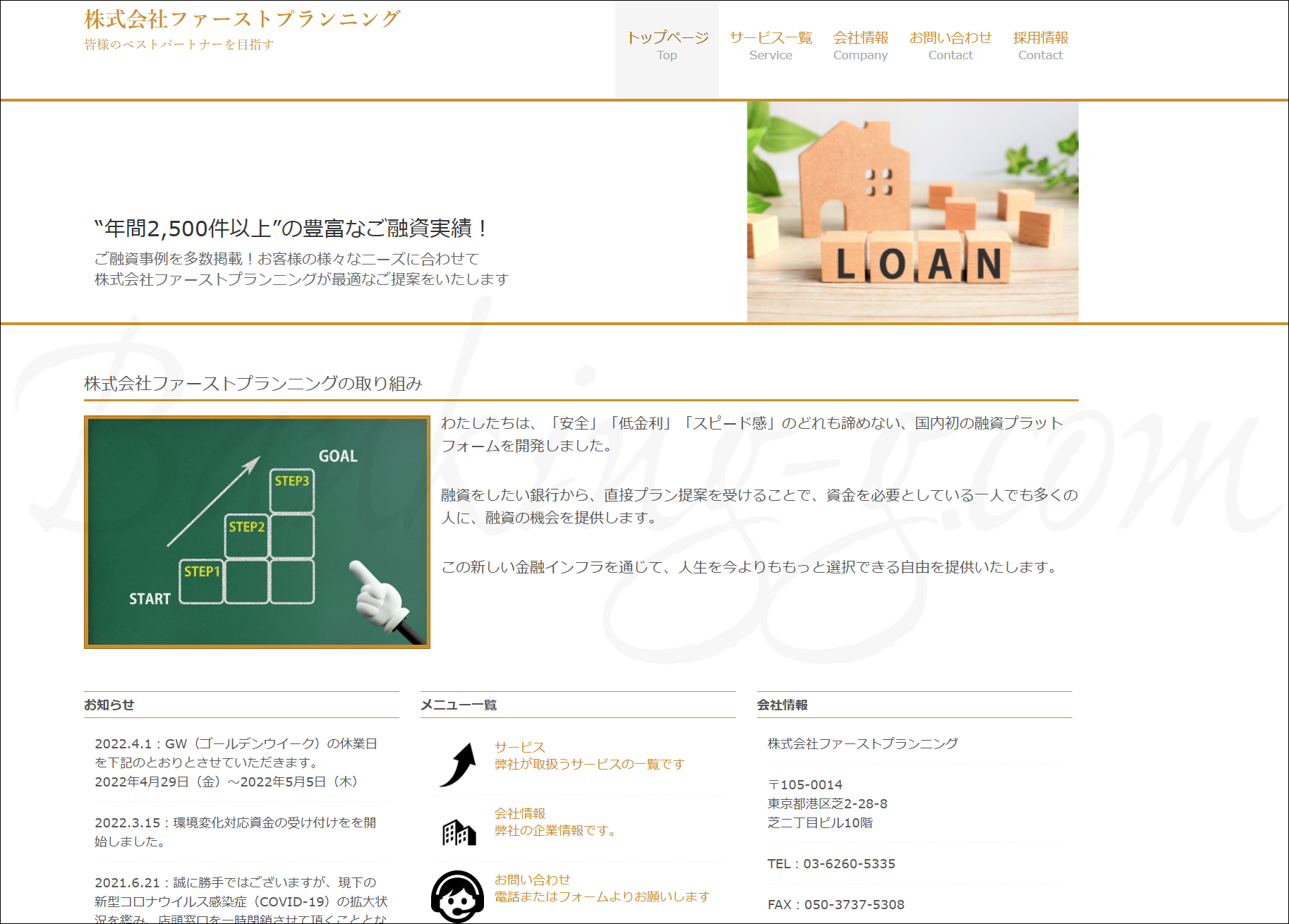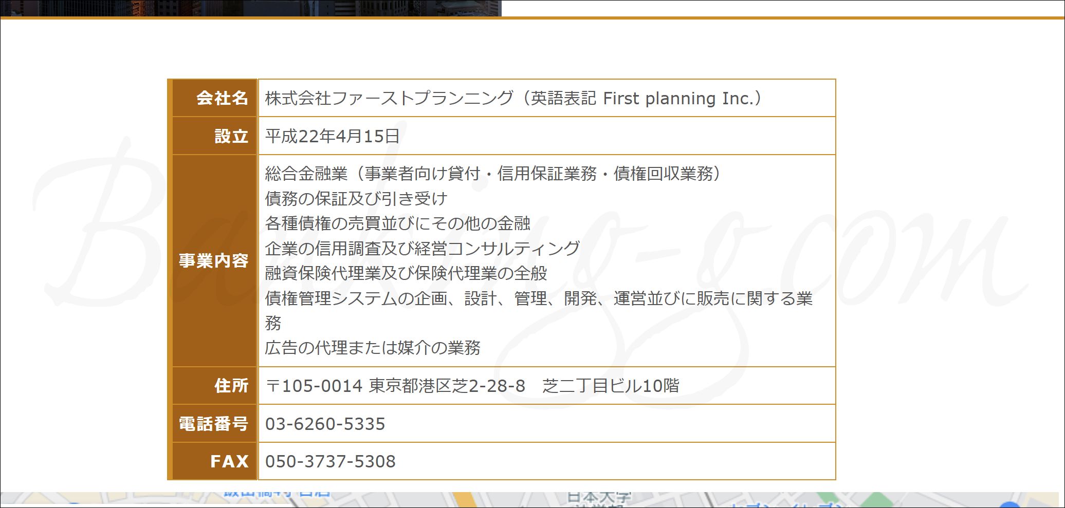 株式会社ファーストプランニングはいつものビジネスローン闇金で、頼みもしない融資案内FAXを送りつけてくるだけでなく、それならと融資を申し込んでもテンプレ通りの融資保証金詐欺を強要してくる先振り詐欺業者でもあります。法人向けの融資業者に成りすましたFAX広告を送りつけているだけで、そもそも、勝手に貸金業を名乗っているだけの危険な無登録業者ですので、絶対に騙されないようご注意願います。