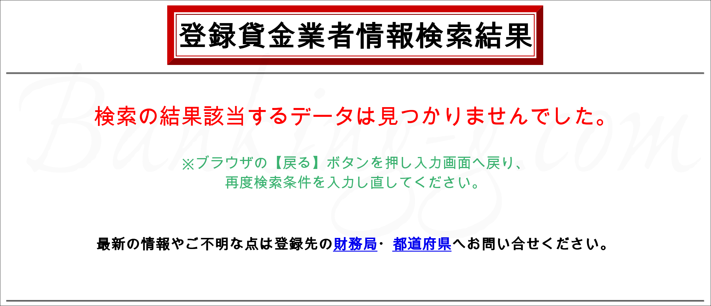 本物の登録貸金業者であるなら、ハガキ広告であれメール広告であれTVコマーシャルであれ、そこに記載の電話番号は例外なく金融庁の公開データベースで確認することができます。融資の広告・宣伝や勧誘にあたって使うことができる電話番号は、貸金業法で事前登録がなされた電話番号に限られているからです。しかしながら、今回の電話番号を金融庁ホームぺージの登録貸金業者データベースで検索しても、一切ヒットしません。完全なモグリ業者なのです。それなのに、本物の登録貸金業者気どりなのですから、お粗末そのものです。