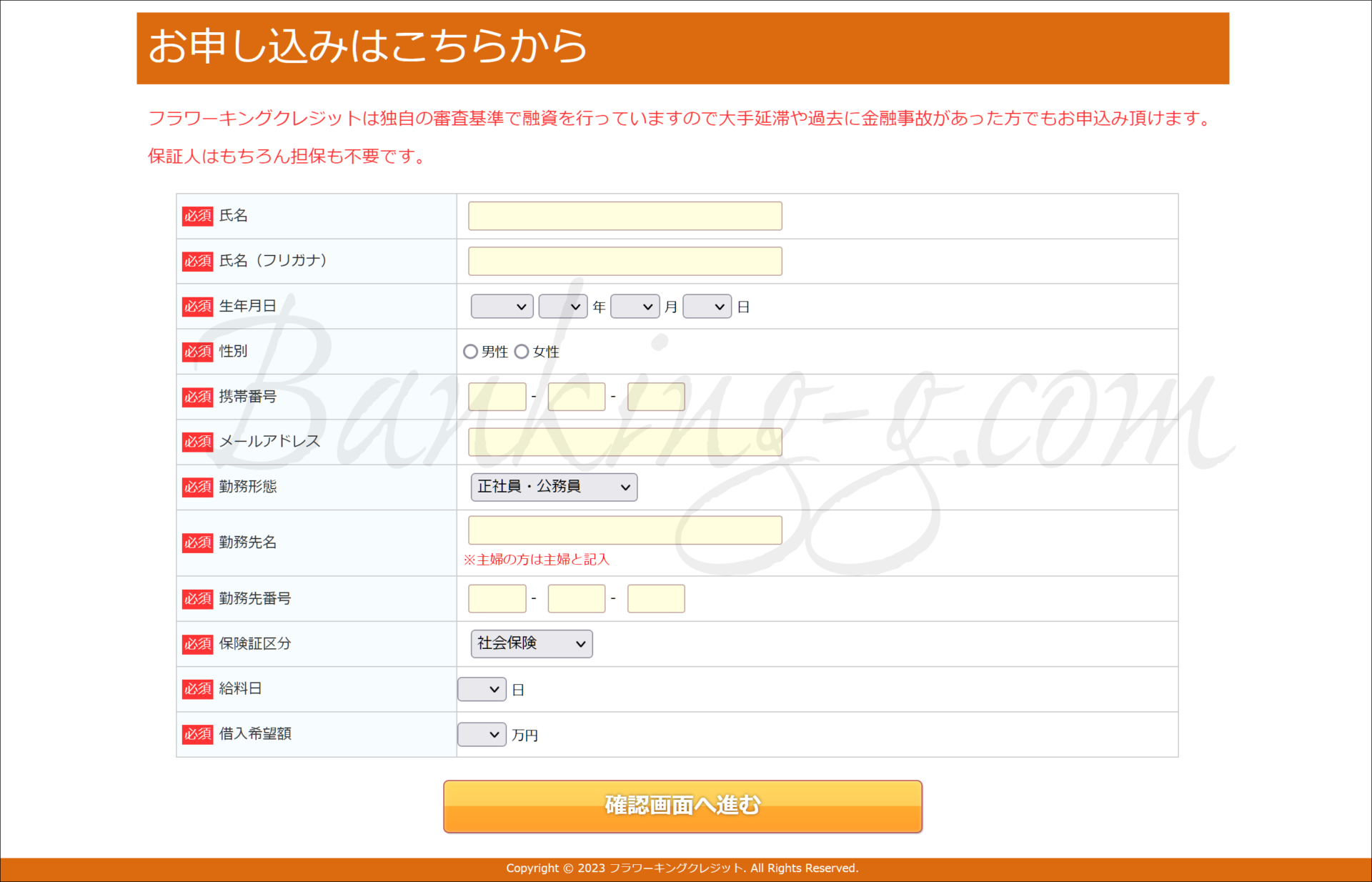たとえば、知名度が高い金融機関ゆえに敷居が高いと勘違いされているこちらの銀行ローンは、アルバイトやパートに派遣社員、契約社員の方々はもちろんのこと、実は収入源が年金のみである年金受給者の方々でも来店不要でご利用いただけるとてもできが良い商品となっています。さすが、資本金が軽く1兆円を超えるだけのことはあります。しかも、借入10万円以下で借入利率が年8.1%超なら、月々の返済2,000円でもOKです。今回のフラワーキングクレジットのようにいつ消息不明になるかもわからない怪しい業者と一体どちらが融資体力がありそうでしょうか。