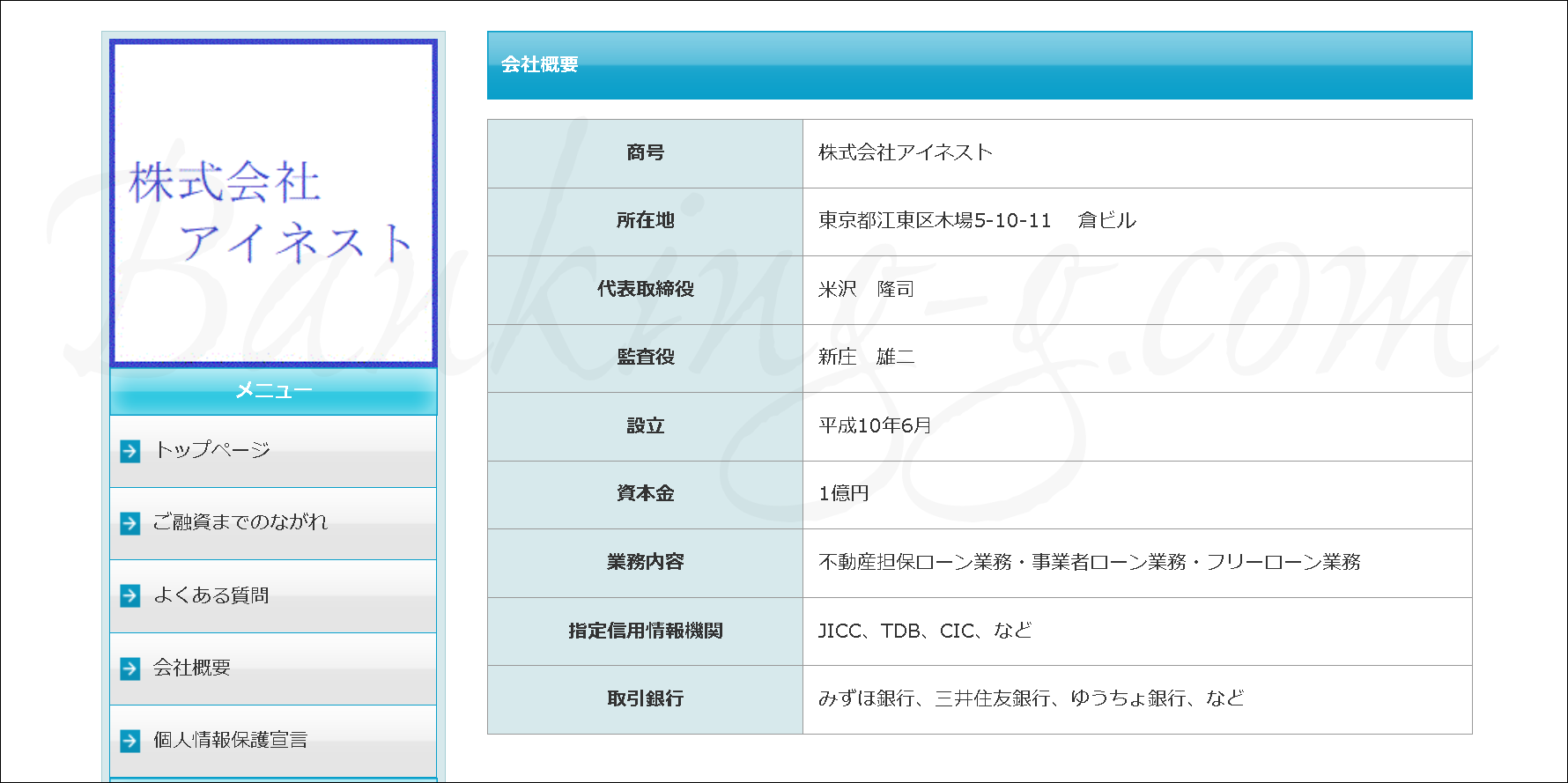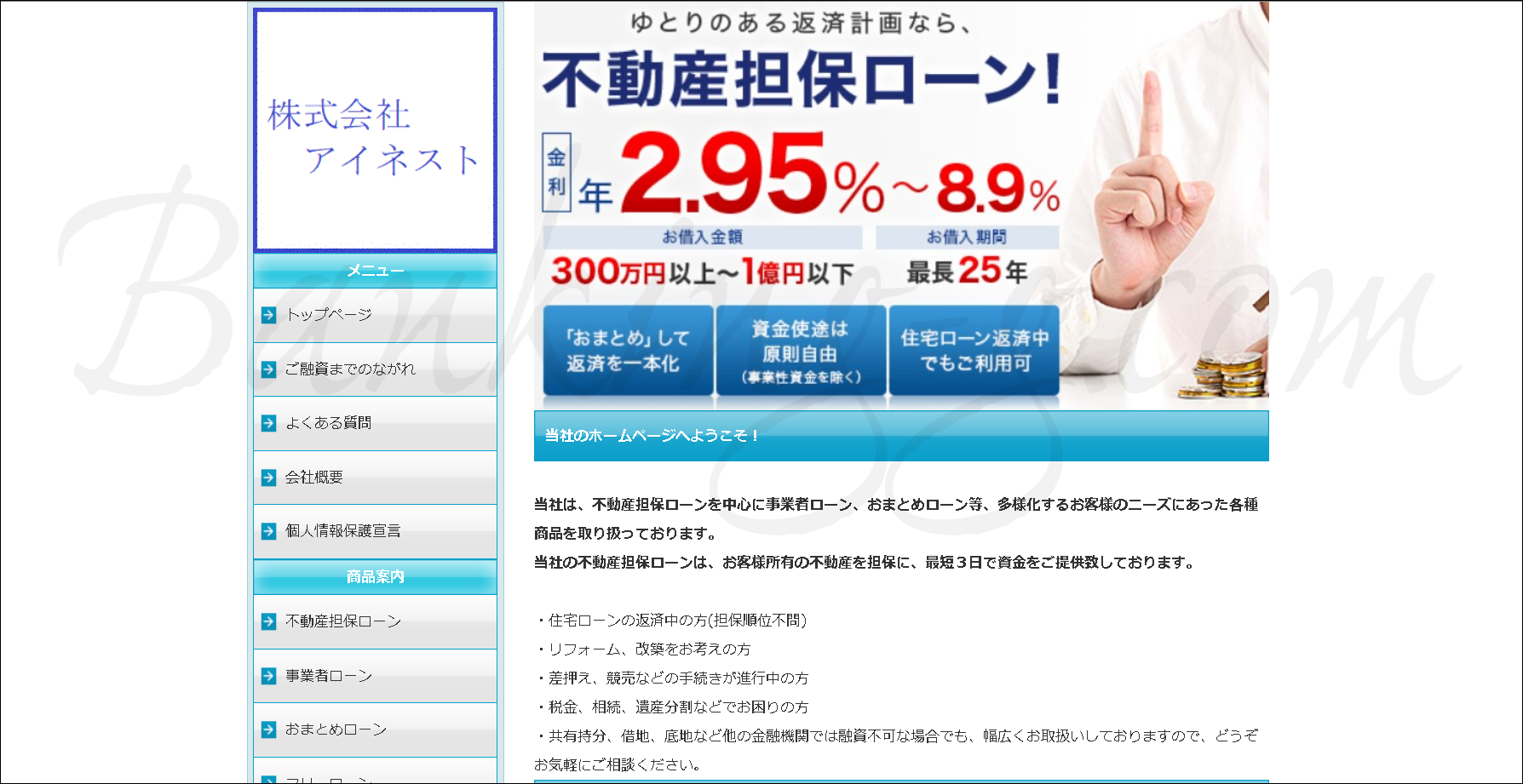 株式会社アイネスト(03-4221-4198)はいつもの変わり映えのないヤミ金業者で、頼みもしない融資案内の迷惑FAX(03-6671-8072)を何度も繰り返し送りつけてくるだけでなく、それではと借入を申し込んでみても「無事、審査に通過しました。では、お口座へお振り込みにてご融資いたしますので、融資額の25パーセントを融資供託金としてお振り込み願います」などと教科書通りの融資保証金詐欺を披露してくれる危険業者でもあります。とにかく何らかの形で先にお金を振り込ませようとしかけてきます。融資業者に成りすました使い捨てサイトを量産しているだけで、もちろん株式会社組織ではありません。そもそも、勝手に貸金業を名乗っているだけの危険なモグリ業者ですので、絶対に引っかからないようご注意願います。