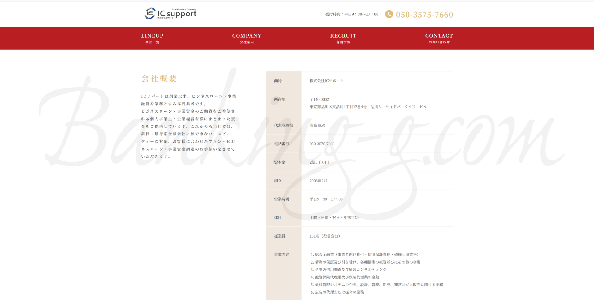 本物の消費者金融であるなら、融資案内が行われるFAXやホームページ上には確実に有効な貸金業登録番号の表記があります。融資の広告・宣伝や勧誘にあたっては貸金業法によって登録番号の記載が義務づけられているからです。ところが、株式会社ICサポートからの融資広告FAXやホームページにはその登録番号が一切ありません。これで本物の貸金業者気どりなのですから、お話にならないと言えます。