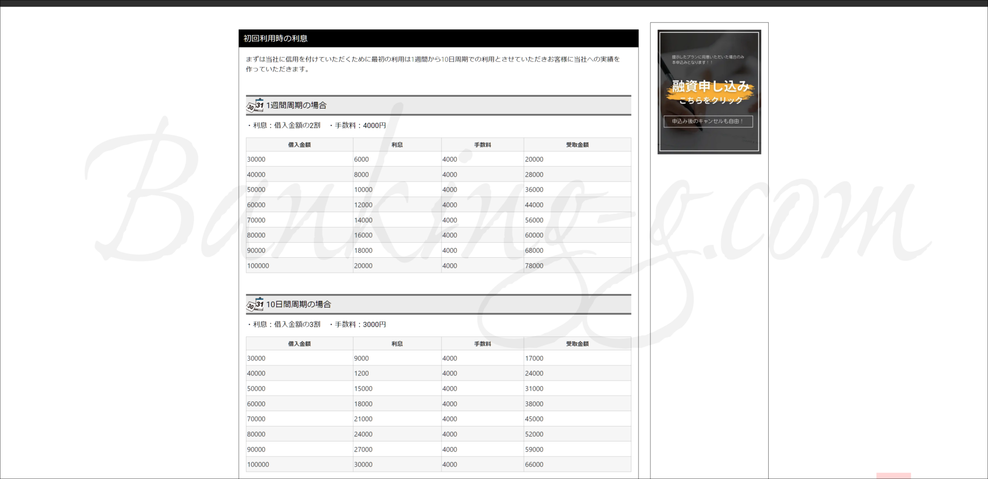 あくまでホームページ上の説明では、このキング企画の利息は1週間2割か10日で3割に手数料が3,000円か4,000円となっています。