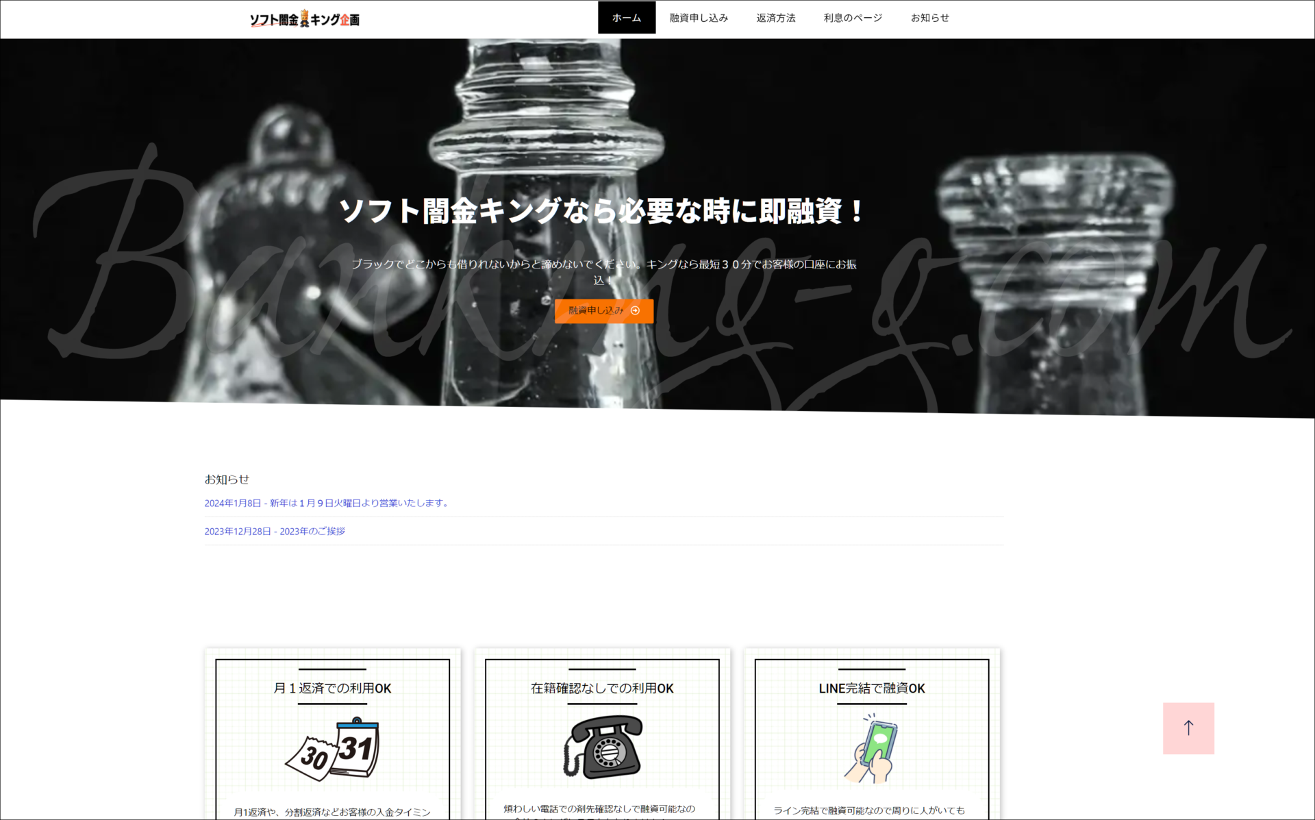 ソフト闇金キング企画はホームページ上で嘘ばかり並べ立てている危険業者です。そもそもからして、キング企画は違法なことをすると公言して開き直っている危険業者なので、絶対に手を出さないように気をつけてください。