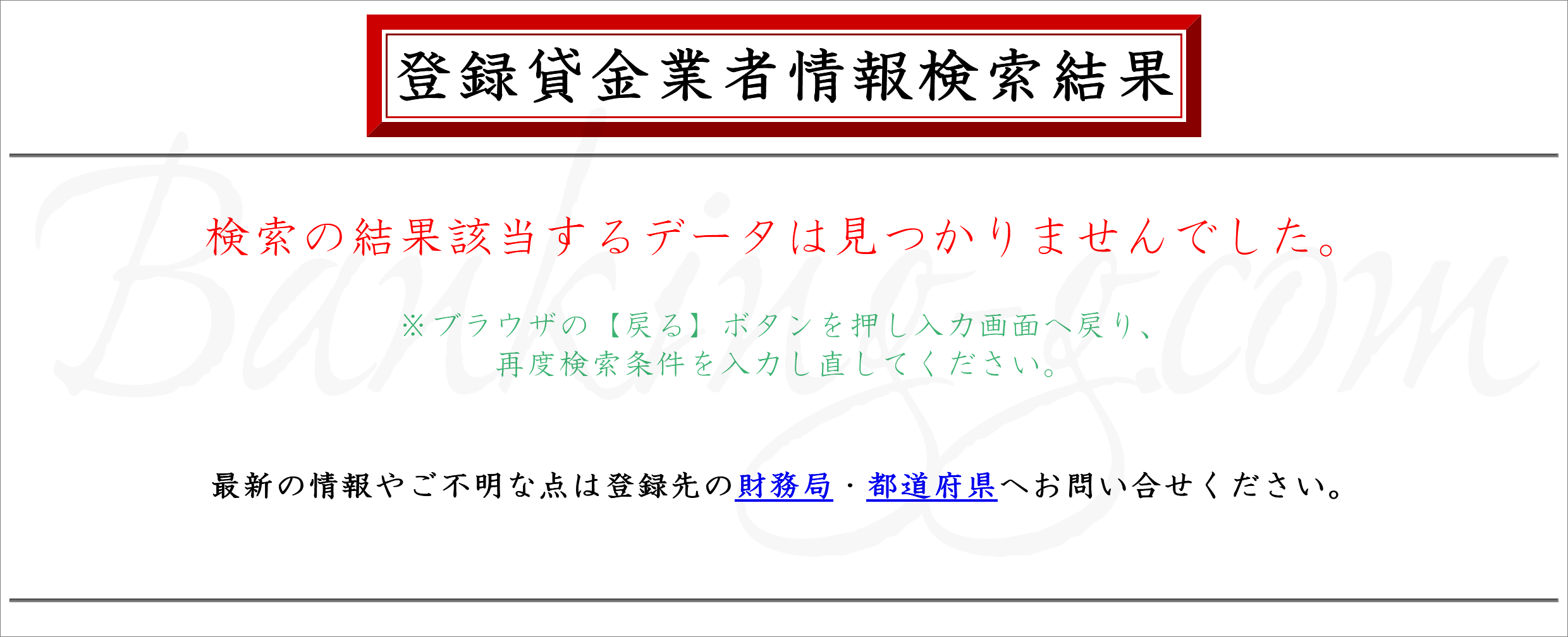 規の登録貸金業者であるなら、融資案内に使われている電話番号は例外なく金融庁の公開データベース上で確認することができます。融資の宣伝や広告、勧誘を行う際に利用することができる電話番号は、貸金業法で事前登録済みの電話番号だけに規制されているからです。しかし、今回の電話番号「09058092581(090-5809-2581)」について金融庁が公開している登録貸金業者データベースで検索しても、一切ありません。文句なしの無登録業者なのです。それなのに、本物の貸金業者のつもりなのですから、お話にならないと言えます。