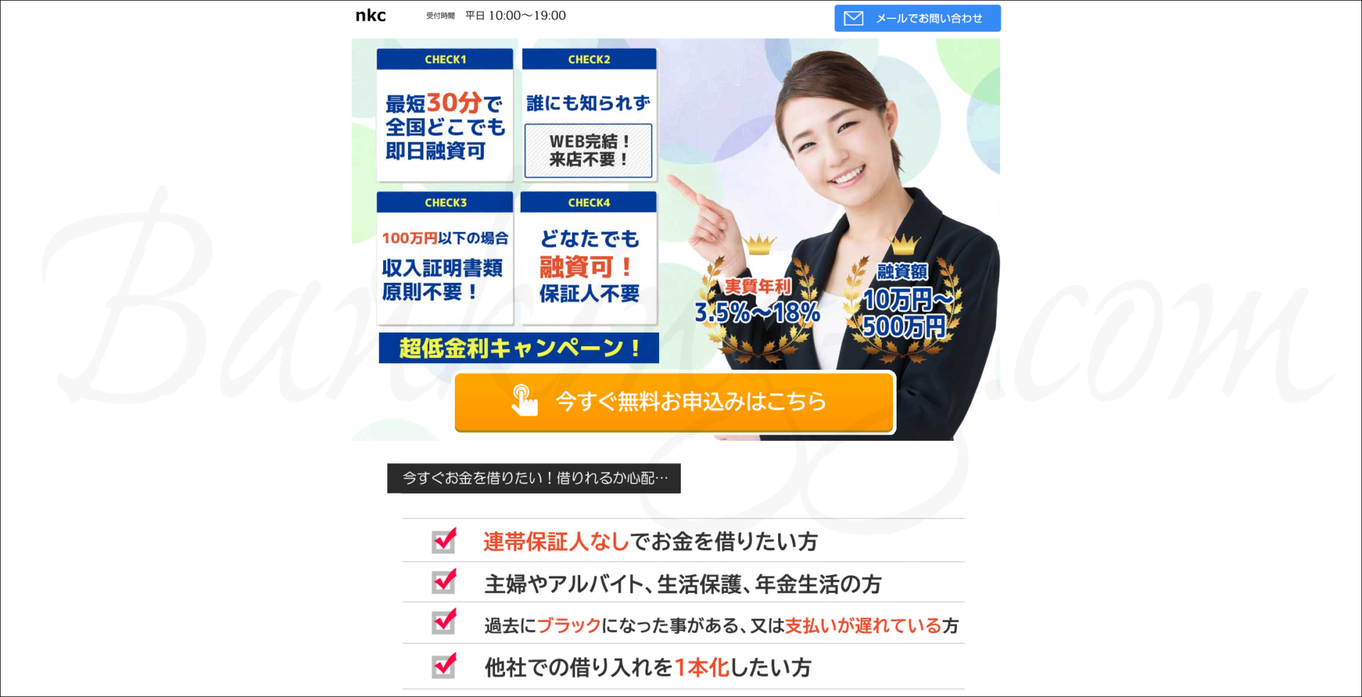 そもそも、nkcのホームページを見ると一目で違法な業者だとわかってしまいます。貸金業法によって厳に禁じられている勧誘表現が普通に使われているからです。「ブラックの方でもご融資確実」「他社お断りの方に朗報」など、ブラックリスト入りしてもはやどの融資業者からも相手にされない多重債務者へもすぐ貸しているかのように装うなど、これらは詐欺業者ご用達の言い回しなのです。この手の審査甘い系の言い回しは詐欺サイトでしか使われない完全に違法な表現なのでぜひ覚えておいてください。