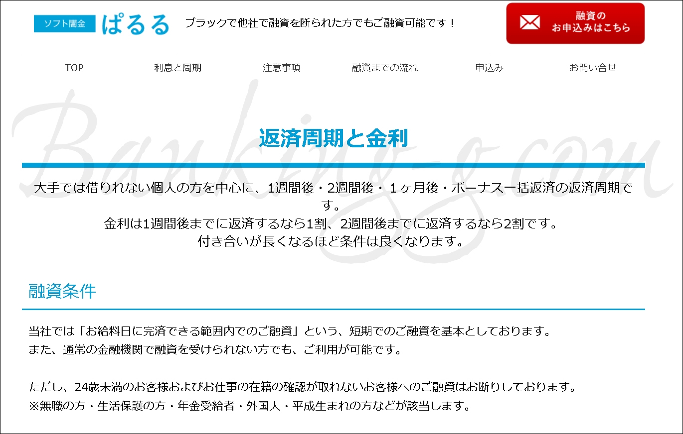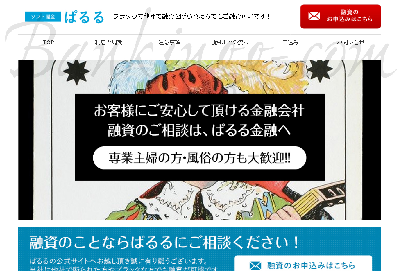 ぱるるはいつものソフト闇金業者です。ホームページに書かれてあることが信用できない業者でもあります。ソフト闇金は優良なヤミ金融などではなく、違法行為をすると宣言している危険業者ですので、絶対に申し込まないようにご注意願います。
