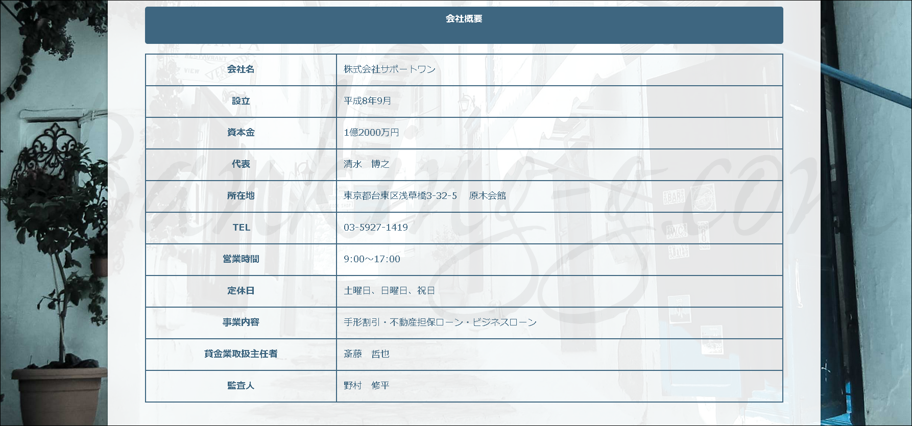 株式会社サポートワン(03-5927-1419)はいつもの闇金業者で、頼んでもいない融資広告FAXを朝っぱらから送りつけてくるだけでなく、それならばと借入を申し込んでみても「無事、審査を通過しました。それでは、お口座へご入金させていただきますので、毎月返済額の4ヶ月分を契約事務手数料としてお納め願います」などと絵に描いたような融資保証金詐欺を披露してくれる先振り詐欺業者でもあります。ビジネスローン業者を装った使い捨てデザインでサイトを量産しているだけで、株式会社を自称していますがもちろん株式会社組織などではありません。そもそも、正規の登録すらないモグリの危険業者なので、絶対に引っかからないようご注意願います。
