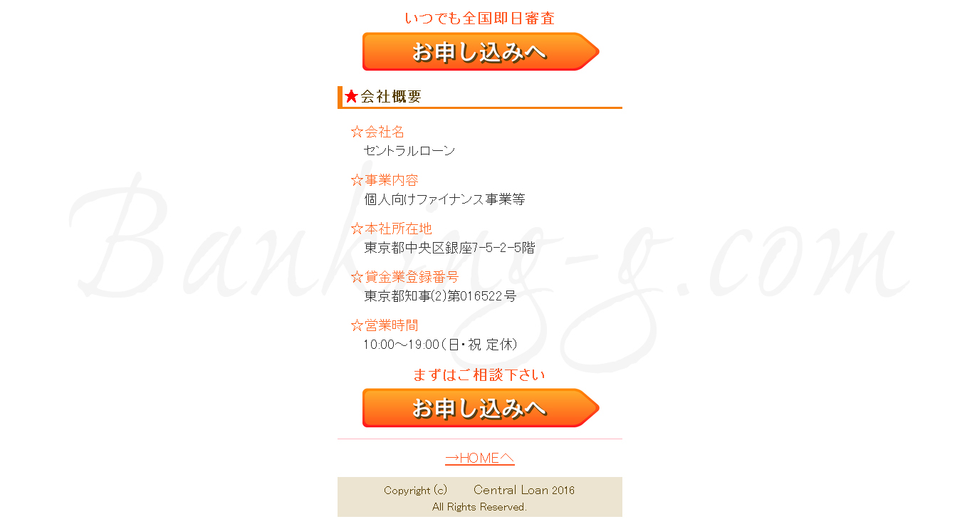 セントラルローンは例の違法業者です。闇金融ですので、うっかり申し込んで個人情報を渡さないようご注意願います。