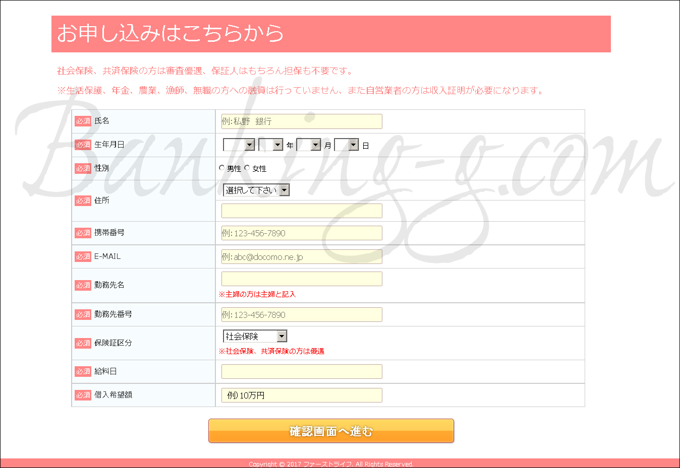 そもそも、ファーストライフのホームページを見ると一目で違法な業者だとわかってしまいます。貸金業法が厳しく禁じている勧誘表現を平然と使っているからです。「ファーストライフは独自の基準でご融資をしていますのでブラックの方もあきらめずに一度ご相談ください。」「他社で断られた方もご相談下さい」などは詐欺業者だけが愛用する言い回しなのです。この手の審査甘い系の言い回しは詐欺サイトでしか使われない完全に違法な表現なので是非覚えておいてください。