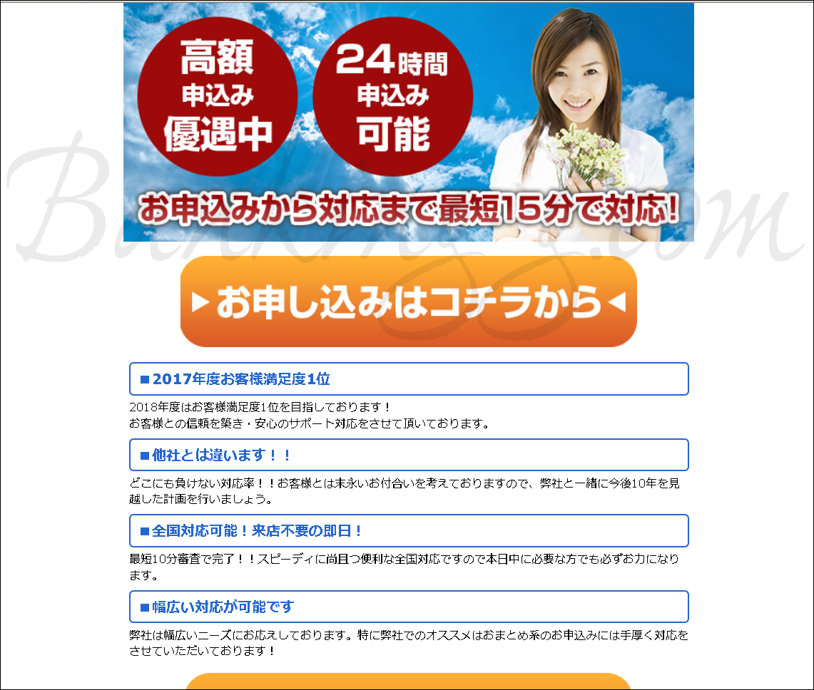そもそも、ライフビジョンのホームページを見ると一目で違法な業者だとわかってしまいます。貸金業法によって厳しく禁じられている勧誘表現を普通に使っているからです。何の根拠も示さない「他社とは違います!!」「どこにも負けない対応率!!」などは詐欺業者ばかりが使う言い回しなのです。この手の審査甘い系の言い回しは詐欺サイトでしか使われない完全に違法な表現なので是非覚えておいてください。