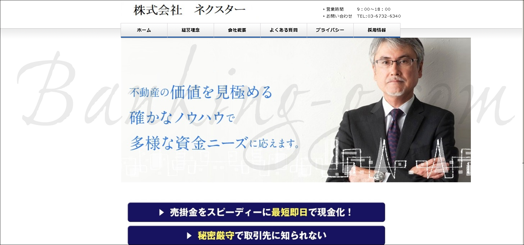 株式会社ネクスター(03-6732-6340)はいつもの変わり映えしないヤミ金業者で、平日だろうが週末だろうがお構いなしに頼んでもいない融資案内の迷惑FAXを送りつけてくるうえに、それならと融資を申し込んでみても「無事、審査を通過しました。では、お口座へご入金させていただきますので、融資金額の25パーセントを預り金としてお納め願います」などと教科書通りの先振り詐欺である融資保証金詐欺を仕掛けてくる課します詐欺業者でもあります。貸金業者やファクタリング業者を装って使い捨てデザインのサイトを量産しているだけで、株式会社と名乗っていますがもちろん法人登記が確認できない自称株式会社にすぎません。そもそも、勝手に貸金業を名乗っているだけの危険なモグリ業者ですので、この手の輩を信じて被害に遭わないよう気をつけてください。