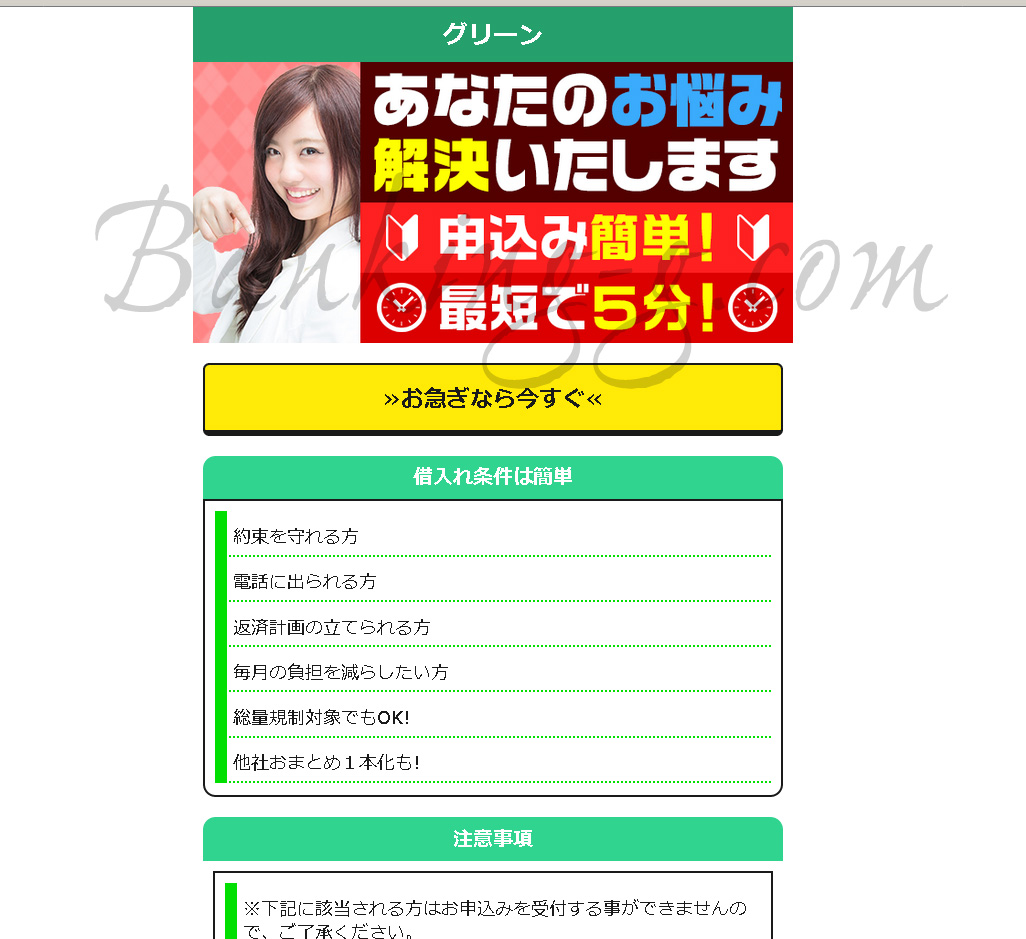 グリーンはいつもの闇金です。無登録のモグリ業者ですので、引っかからないようにしてください。