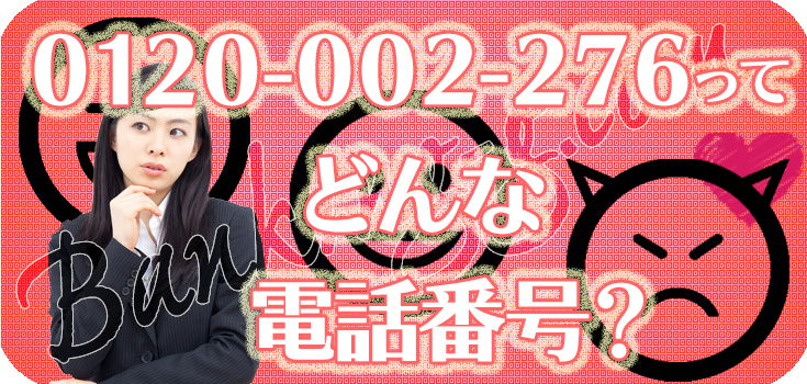 電話番号「0120002276」についての口コミ体験談をお待ちしております。