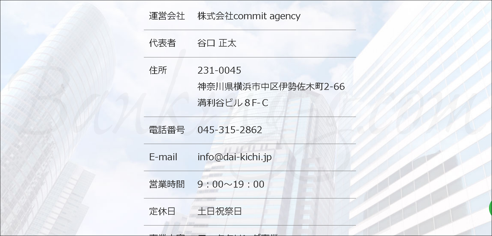 大吉(0453152862)の運営会社は横浜の株式会社commit agency(谷口正太代表)