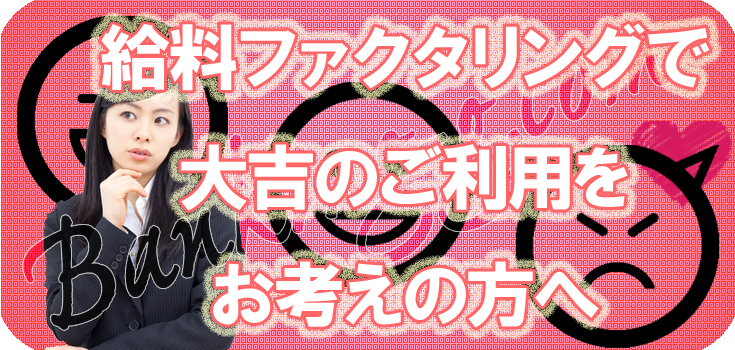 「大吉」で給料ファクタリングを利用しようとお考えの方に、ぜひ覚えておいていただきたいことがあります。給料ファクタリングの実質的な金銭負担は、カードローンやキャッシングを利用する場合よりはるかに重いということです。利用するのは本当に他に手段がない場合のみとしたほうが生活への負担を軽く済ませられます。給料ファクタリング・給与ファクタリングのご利用を検討中の方々が最後まで申込みに二の足を踏んでしまう最大の要因は、この実質的な負担の重さにあると言っても良いでしょう。何しろ、負担の重さ自体はとても体感できるのに、どうしてそうなるのかが一見すると分かりづらくなっているのです。