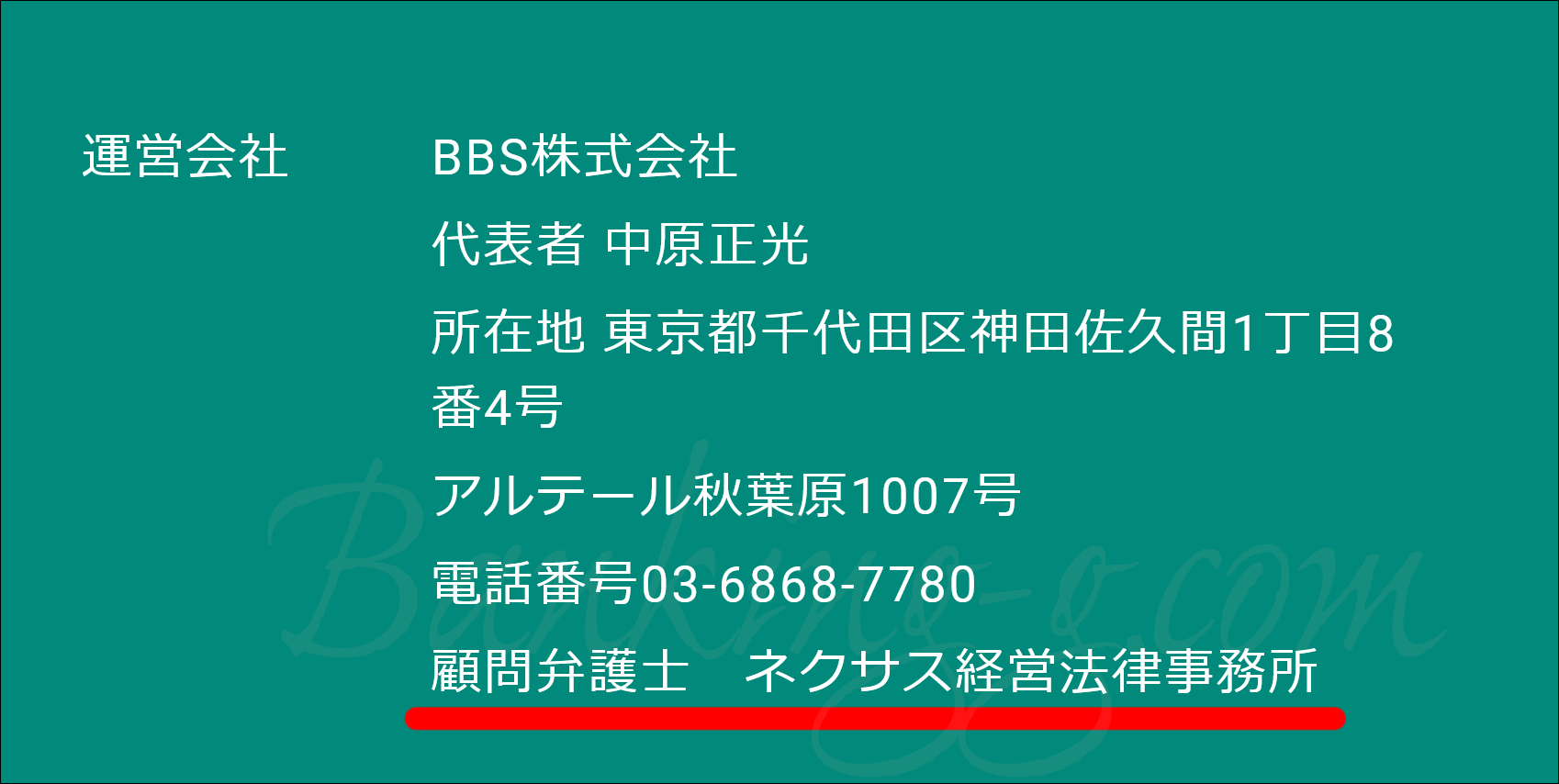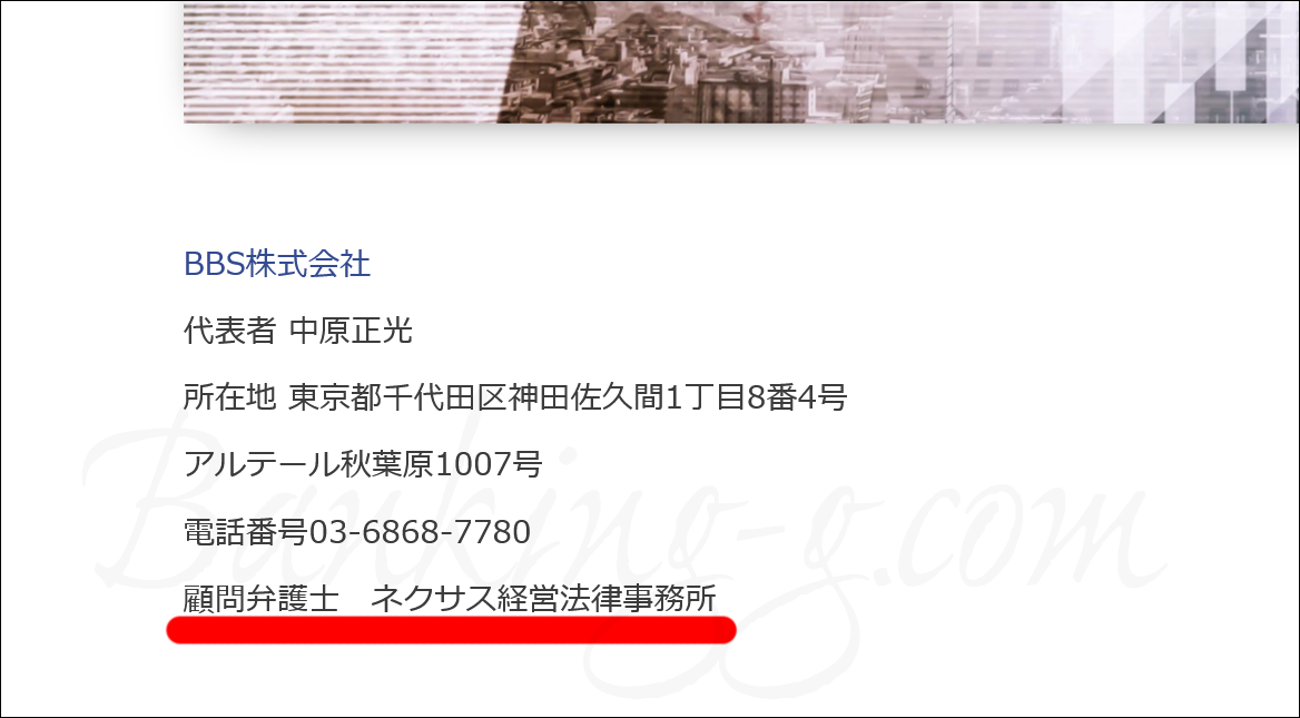 posme(BBS株式会社)の顧問も弁護士名の表記ではなくネクサス経営法律事務所となっていました。posmeはエンゾウが運営している女性向けの給料ファクタリングなので、顧問弁護士も同じだったのでしょう(現在は顧問ではありません)。