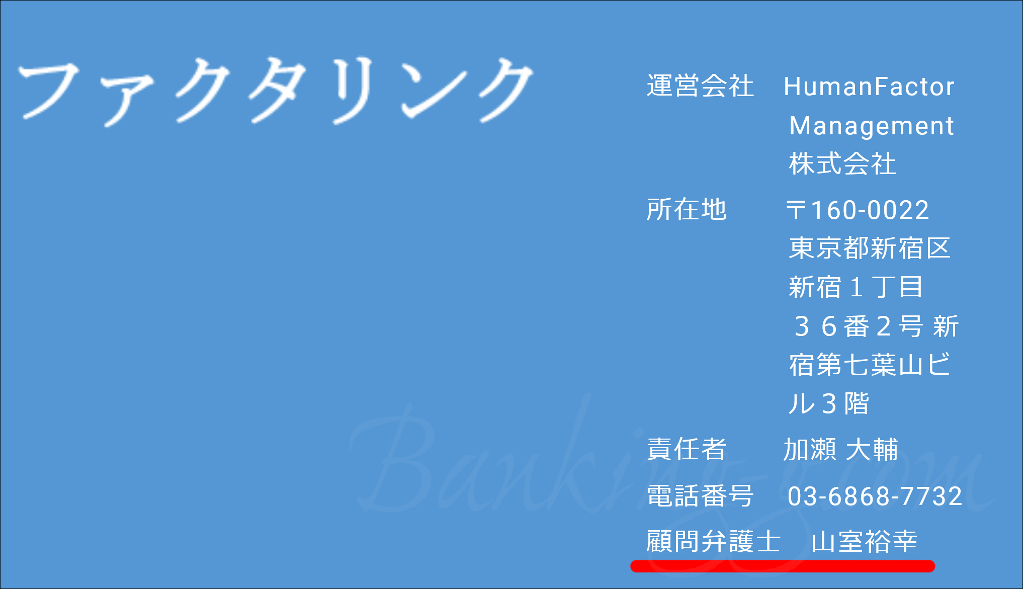 ファクタリンク(umanFactor Management株式会社)の顧問はネクサス経営法律事務所の山室裕幸弁護士でした(現在は顧問ではありません)。