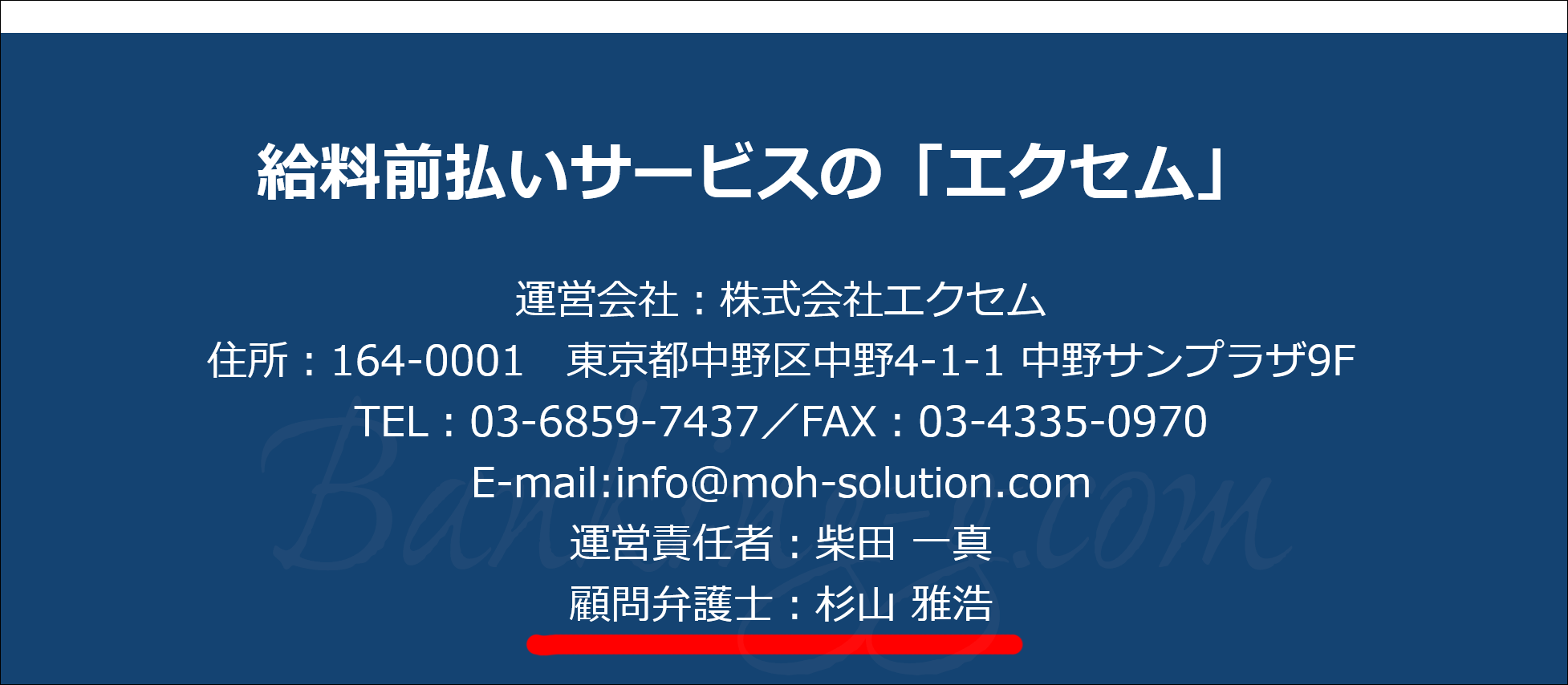 こちらの業者は「給料ファクタリングサービス」から「ヒューマン」、そして「エクセム」へと名前が変わっていますが、顧問は変わらずにVスピリッツ法律事務所の杉山雅浩弁護士です。