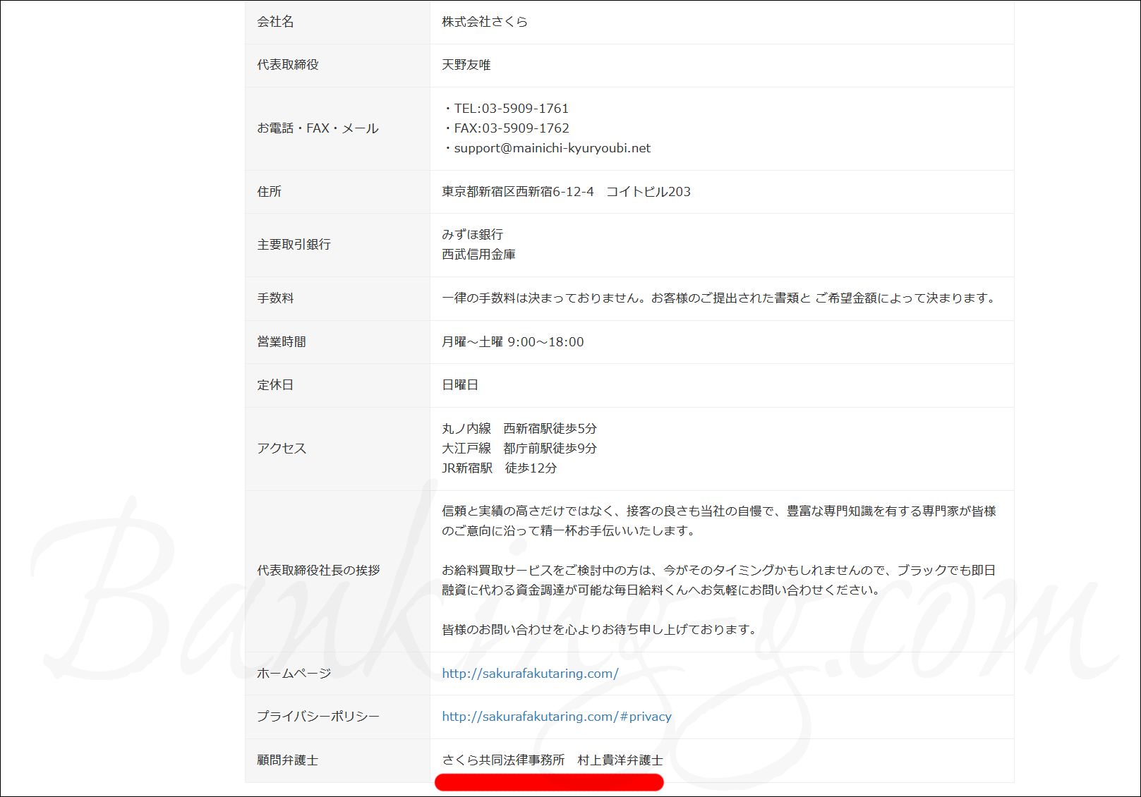 毎日給料日くん(株式会社さくら)の顧問弁護士も、さくら共同法律事務所の村上貴洋弁護士です。