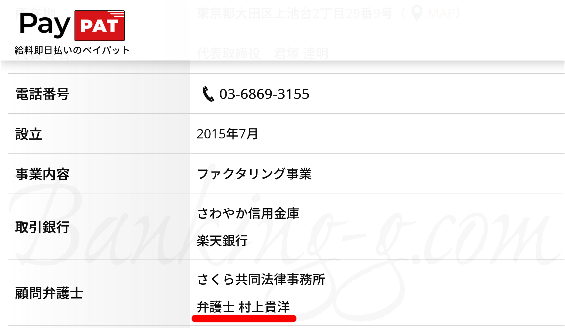 ペイパットの顧問も村上貴洋弁護士(さくら共同法律事務所)