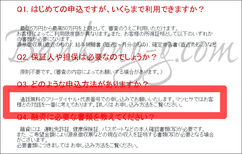 若い業者ではありますが、地域密着型金融の王道を行く対面融資を重視していることがうかがえます。インターネットでの申し込みできないので、必ず一度はお客様と話をするという動線が引かれています。下手に大手の真似をしても与信が難しくなるだけということがわかっているのでしょう。ホームページ上でも